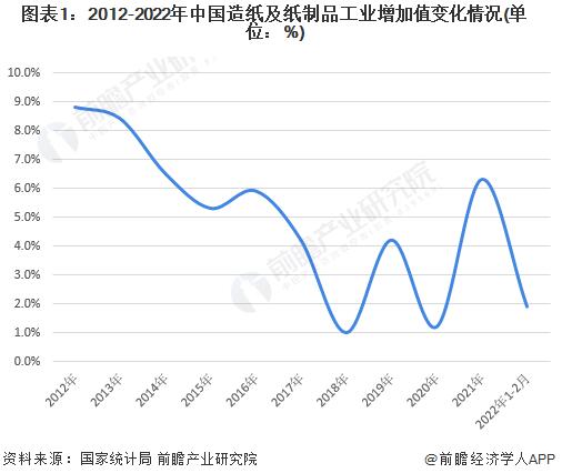 2012-2021年,全國造紙及紙制品工業增加值增速整體呈現波動變化的態勢,特別是在近幾年,受到國際貿易壁壘、新冠疫情等復雜因素的影響,市場波動較大。2021年,全國造紙及紙制品工業增加值同比恢復性增長6.3%;2022年1-2月累計同比增長1.9%。整體來看,全國紙制品工業發展正處于低速增長階段。